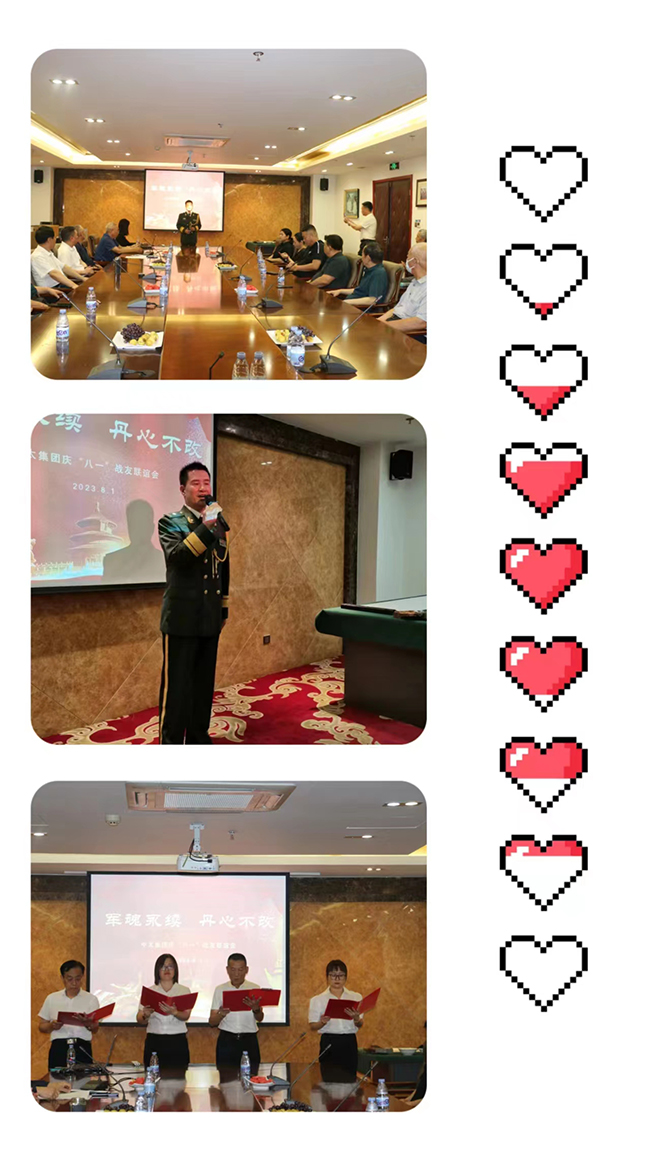 集團領導代表集團公司向在座的各位老首長、老戰(zhàn)友,以及集團公司未參加今天活動的全體老戰(zhàn)友致以誠摯的問候和節(jié)日的美好祝福!集團領導指出,召開戰(zhàn)友聯(lián)誼座談會,是中太集體轉業(yè)以來一直延續(xù)到現(xiàn)在的最盛大的活動之一,既是為了紀念建軍這個光輝節(jié)日,也是借此機會與老戰(zhàn)友們見見面、敘敘舊。