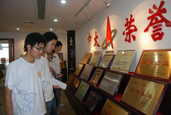 在為期兩天的“曙光行動”行程中,同學們來到中太老年康復醫院,把自己制作的一串串千紙鶴贈送給正在住院治療的老爺爺、老奶奶們,并做了一些力所能及的事情,使他們感受到了90后學子們的真情和希望所在。同學們還參觀了中太下屬部分企業,并作客廊坊廣播電臺“心海夜航”直播間,與聽眾們就“感恩”話題,進行了溝通和交流;參觀中太建設集團抗震救災榮譽陳列室;與中太建設集團曾參與四川汶川大地震搶險救援隊員、過渡安置房安裝援建突擊隊員以及中太新入公司的大學生們進行了座談。