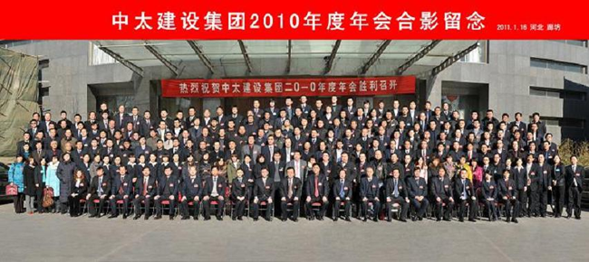 “規(guī)范管理謀發(fā)展 創(chuàng)先爭(zhēng)優(yōu)譜新篇”。在辭舊迎新之際,1月16日上午,中太建設(shè)集團(tuán)在廊坊中太大廈二樓報(bào)告廳隆重召開了2010年度年會(huì),總結(jié)過去,謀劃未來。董事局主席、黨委書記李文健到會(huì)并做重要講話。中太投資控股集團(tuán)副總裁趙志民,董事局成員(董事局秘書);監(jiān)事會(huì)成員;經(jīng)營層成員;來自全國各地的各工程局長(zhǎng)、副局長(zhǎng);外埠各分公司、子公司(董事長(zhǎng)、經(jīng)理、書記);廊坊區(qū)域分公司、子公司(董事長(zhǎng)、經(jīng)理、書記、副經(jīng)理、主任工程師、辦公室主任);總部機(jī)關(guān)全體人員;2010年度部分受集團(tuán)表彰先進(jìn)集體和先進(jìn)個(gè)人共計(jì)300人參加了會(huì)議。大會(huì)由集團(tuán)副總裁劉啟友主持。