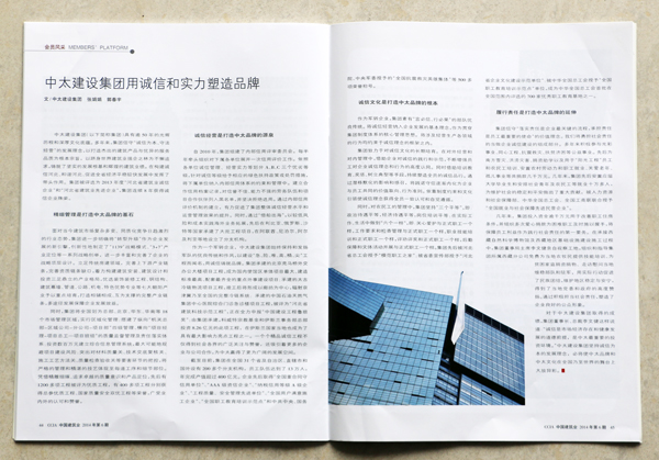 《中國(guó)建筑業(yè)》雜志2014年第6期報(bào)道了中太建設(shè)集團(tuán)用誠(chéng)信和實(shí)力塑造品牌