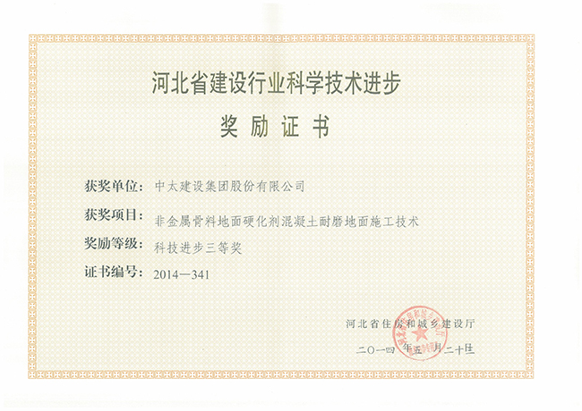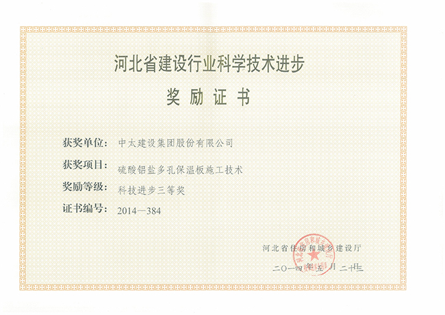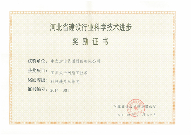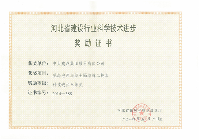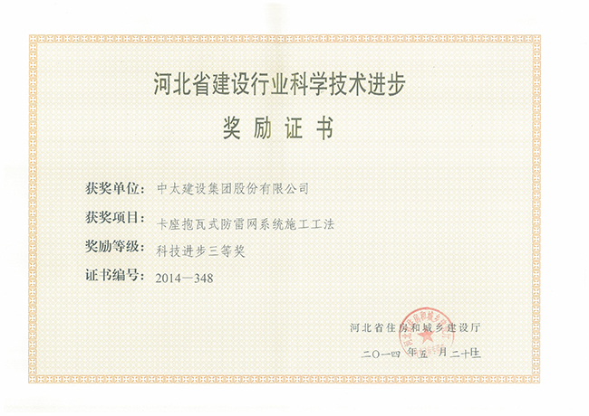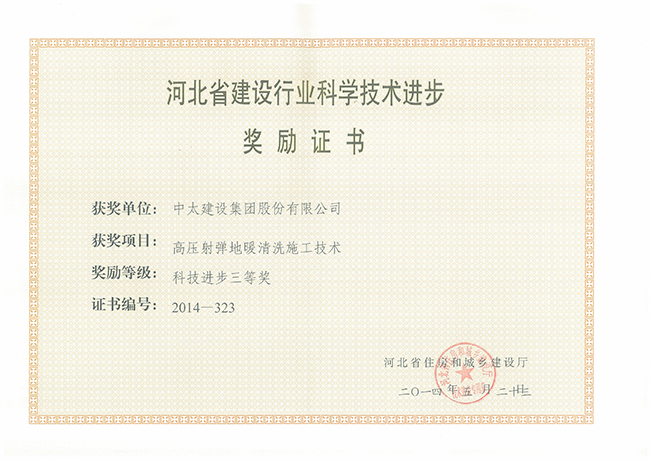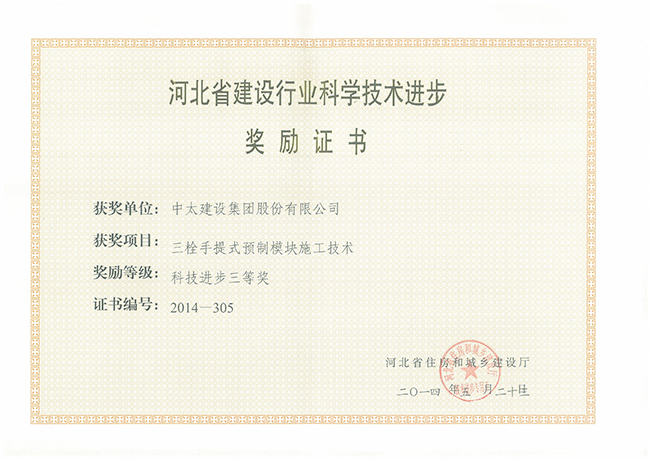2014年河北省建設行業科學技術進步獎勵證書匯總