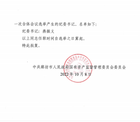 [2022] 3號關(guān)于轉(zhuǎn)發(fā)《中共廊坊市國有資產(chǎn)監(jiān)督管理委員會委員會關(guān)于同意中共中太建設(shè)集團股份有限公司